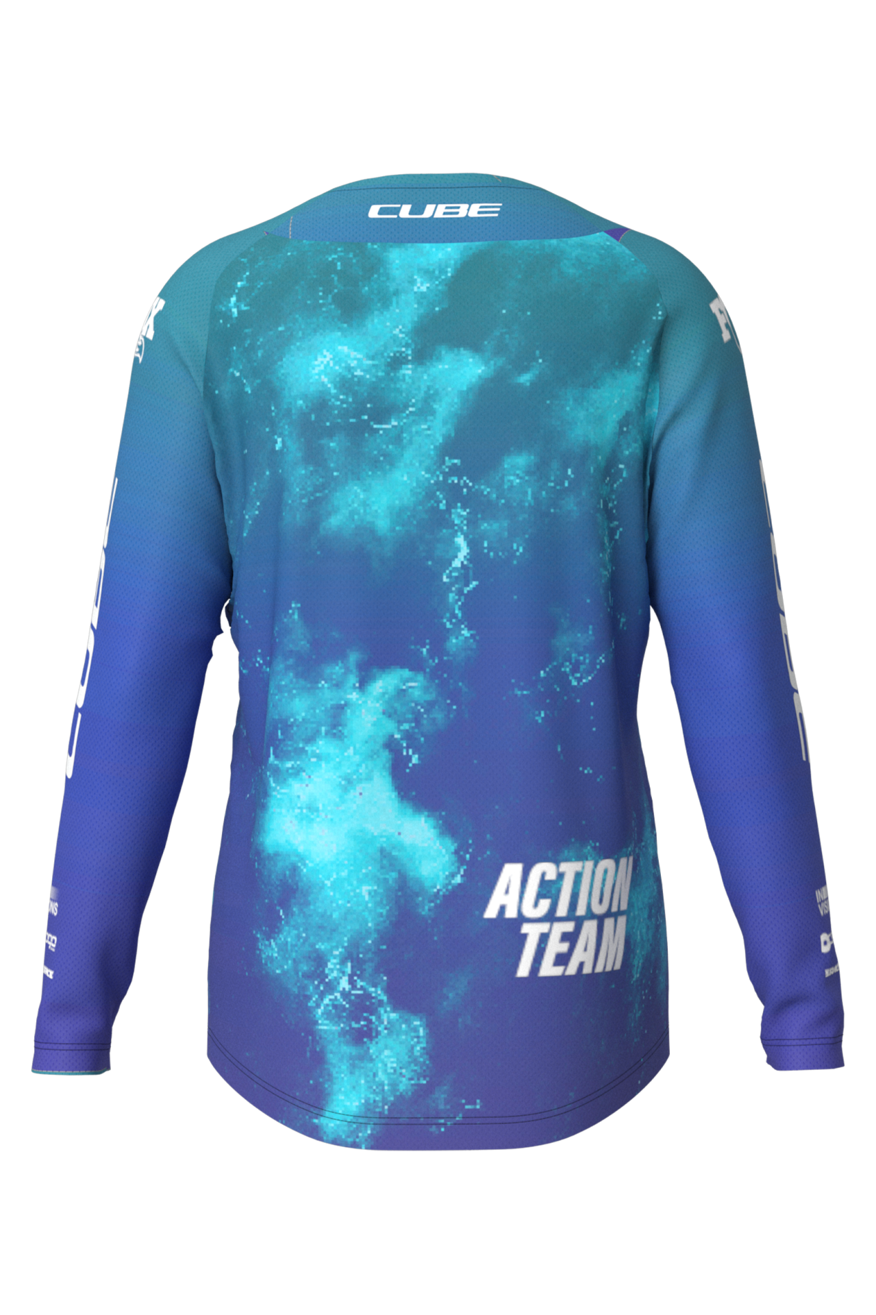 CUBE MTB X Actionteam L/S to techniczna koszulka DH z długim rękawem, która łączy lekki i elastyczny materiał z pełną kompatybilnością z ochraniaczem karku. Praktyczne detale, jak kieszonka na karnet, wydłużony tył i wzmocnione obszycie, czynią ją idealnym i wytrzymałym wyborem do bike parku i na trasy enduro.